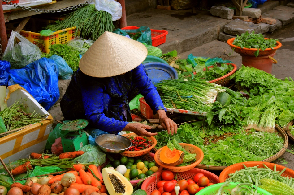 第二天,我们在琅东汽车站乘国际大巴到河内,全程七个小时168元,包括在友谊关边检的半个多小时。过关之后换了一辆大巴,汽车在双向两车道的公路上行驶,窗外是郁郁葱葱的小丘陵,五颜六色的越式建筑和戴绿帽子骑摩托的人越来越多。偶尔经过场镇,街道两边摆着数不清的金桔和菊花待售,和广东春节的习俗一样。
